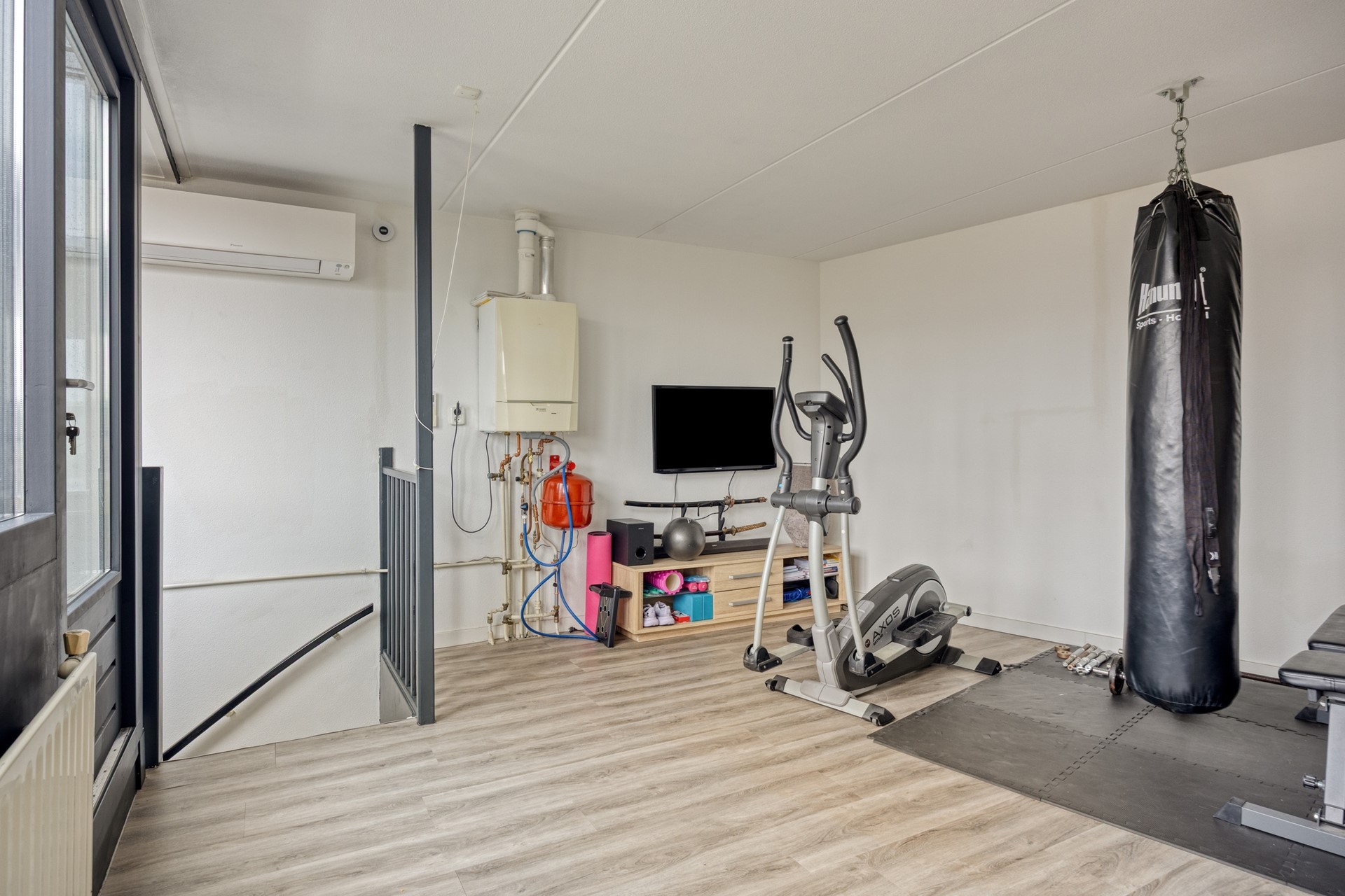 De tweede verdieping is een open ruimte die nu wordt gebruikt als sport- en studeerplek. Thuiswerken, hobby’s of een extra slaapkamer? Het kan hier allemaal. En dan het dakterras op het zuiden: een heerlijke plek voor je eerste kop koffie in de zon of een ontspannen moment aan het eind van de dag.