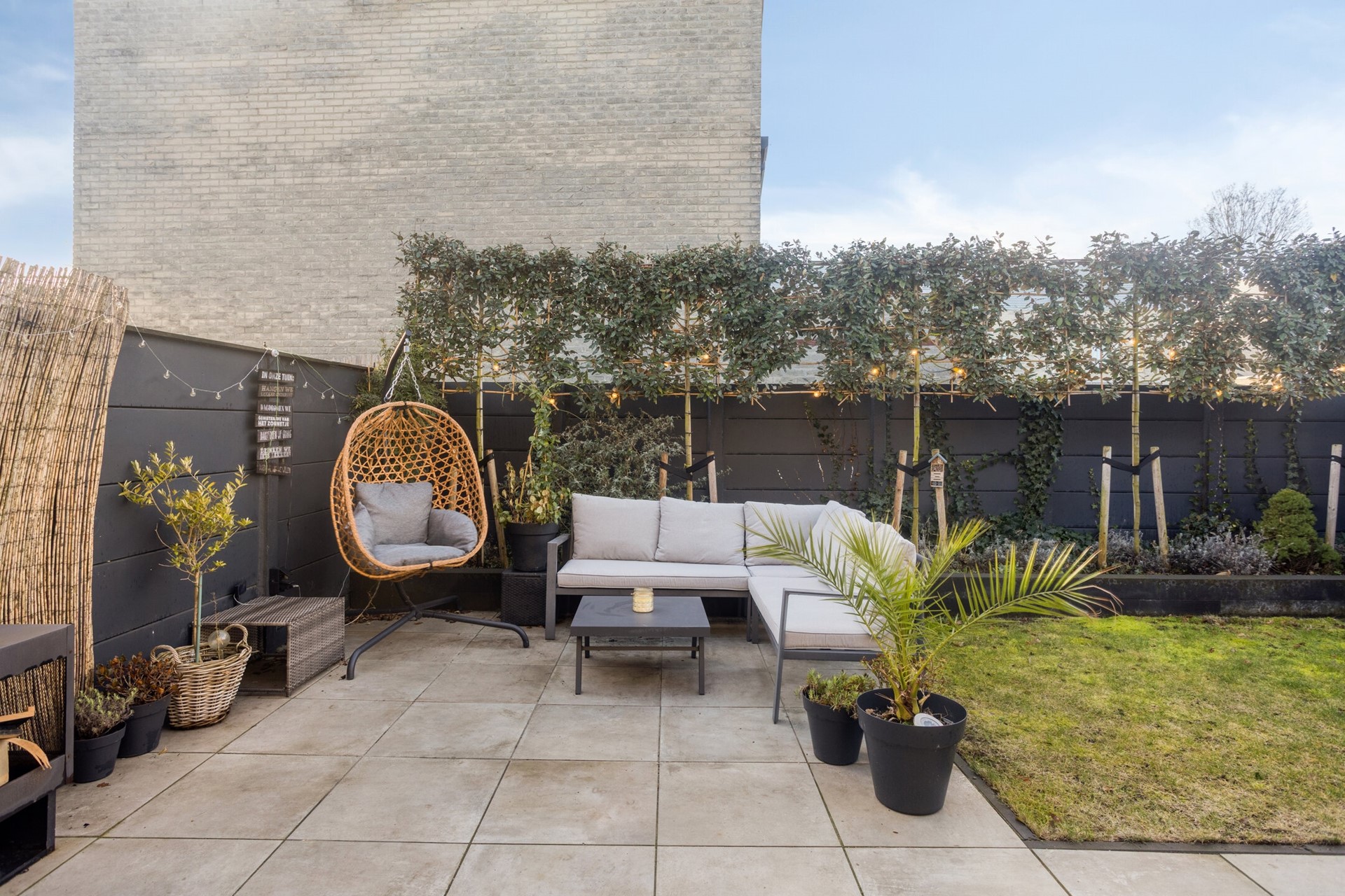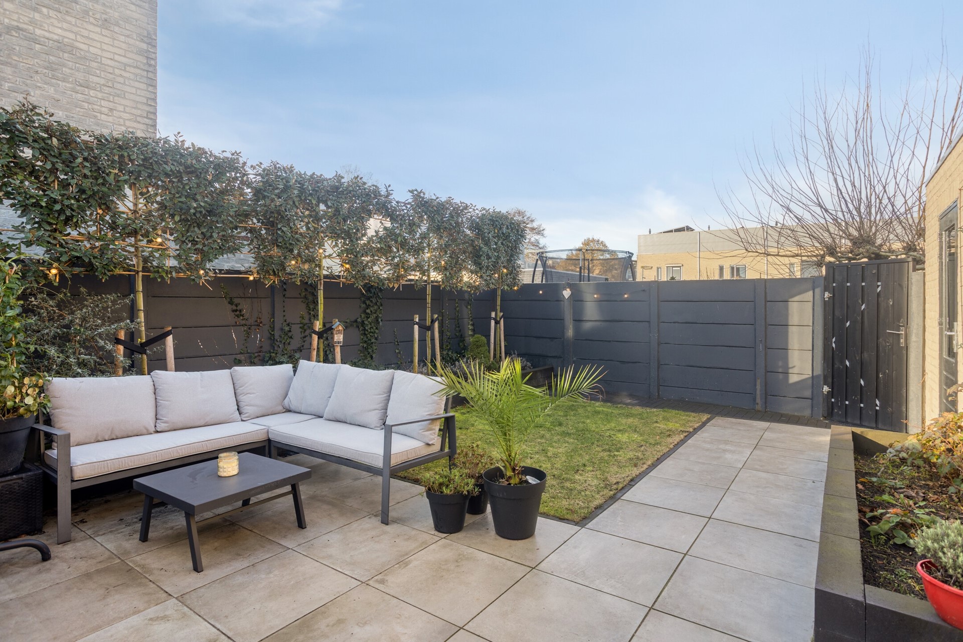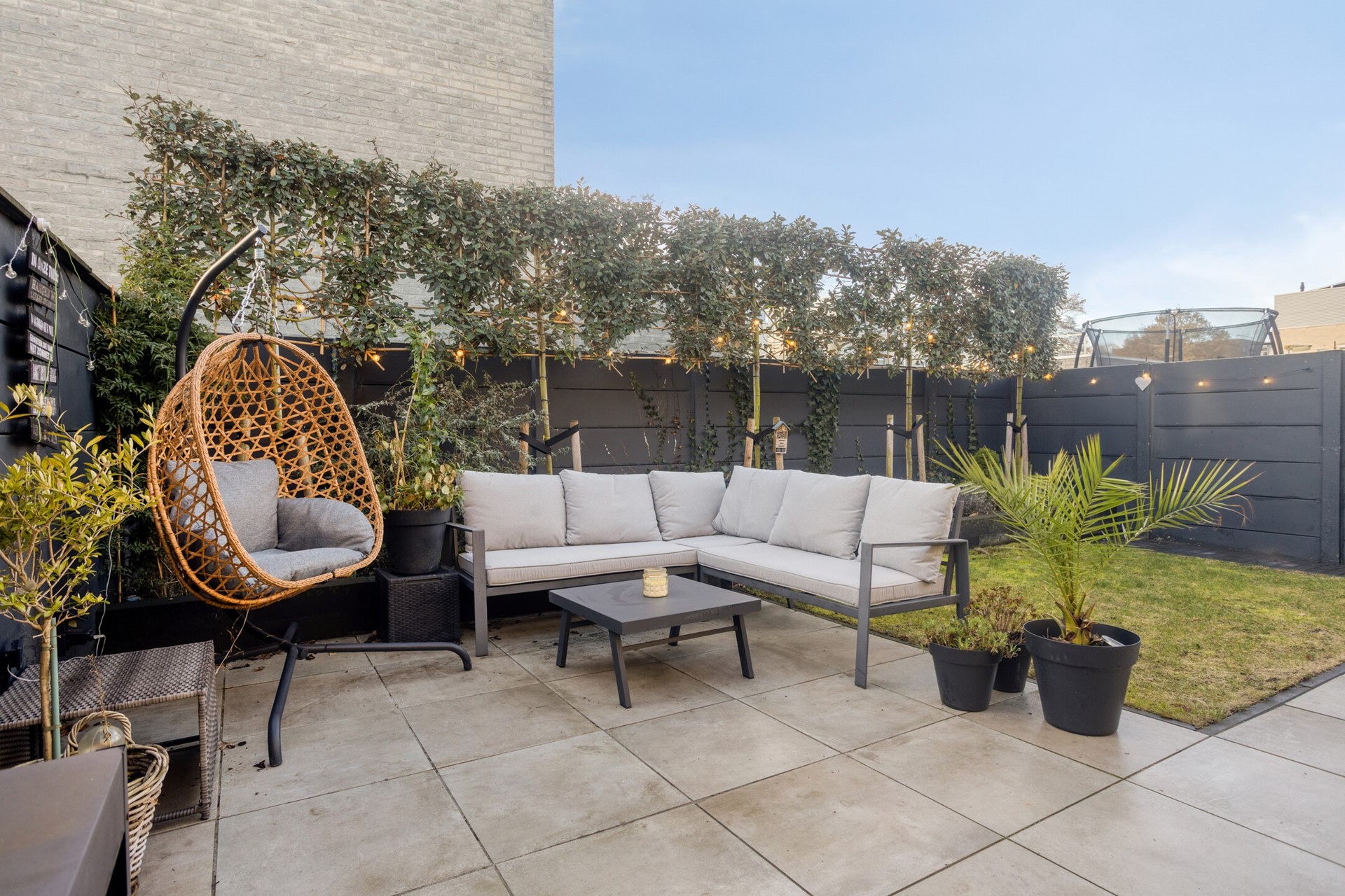 De tuin is recent opnieuw aangelegd en helemaal ingericht op genieten met weinig onderhoud. Keramische tegels, nette borders en een stukje gazon zorgen voor een fijne balans. Volledig omsloten, zonnig gelegen en met een vrije achterom. Zie je het al voor je? Zomeravonden, barbecue aan en kinderen die nog even buiten spelen.