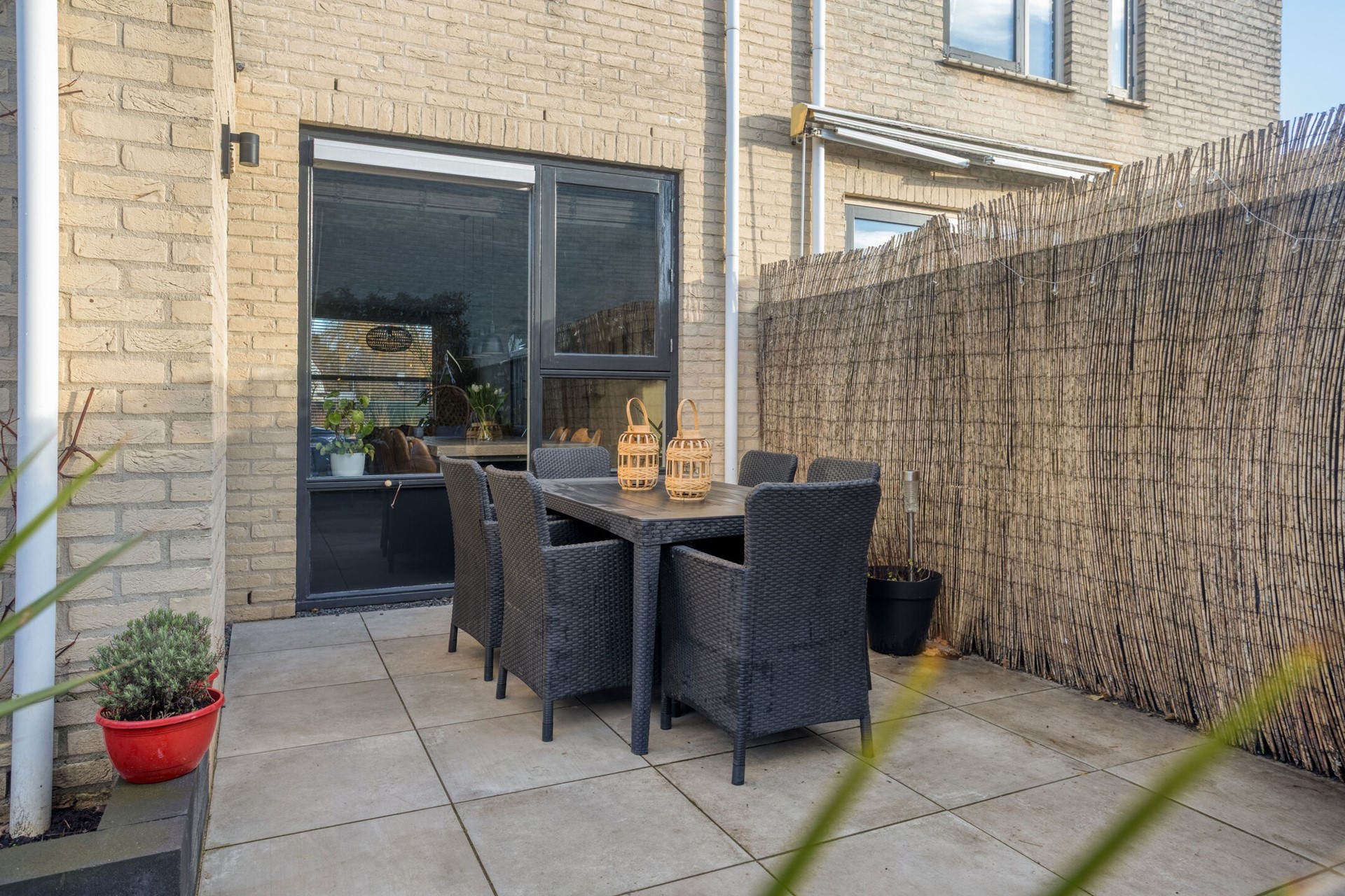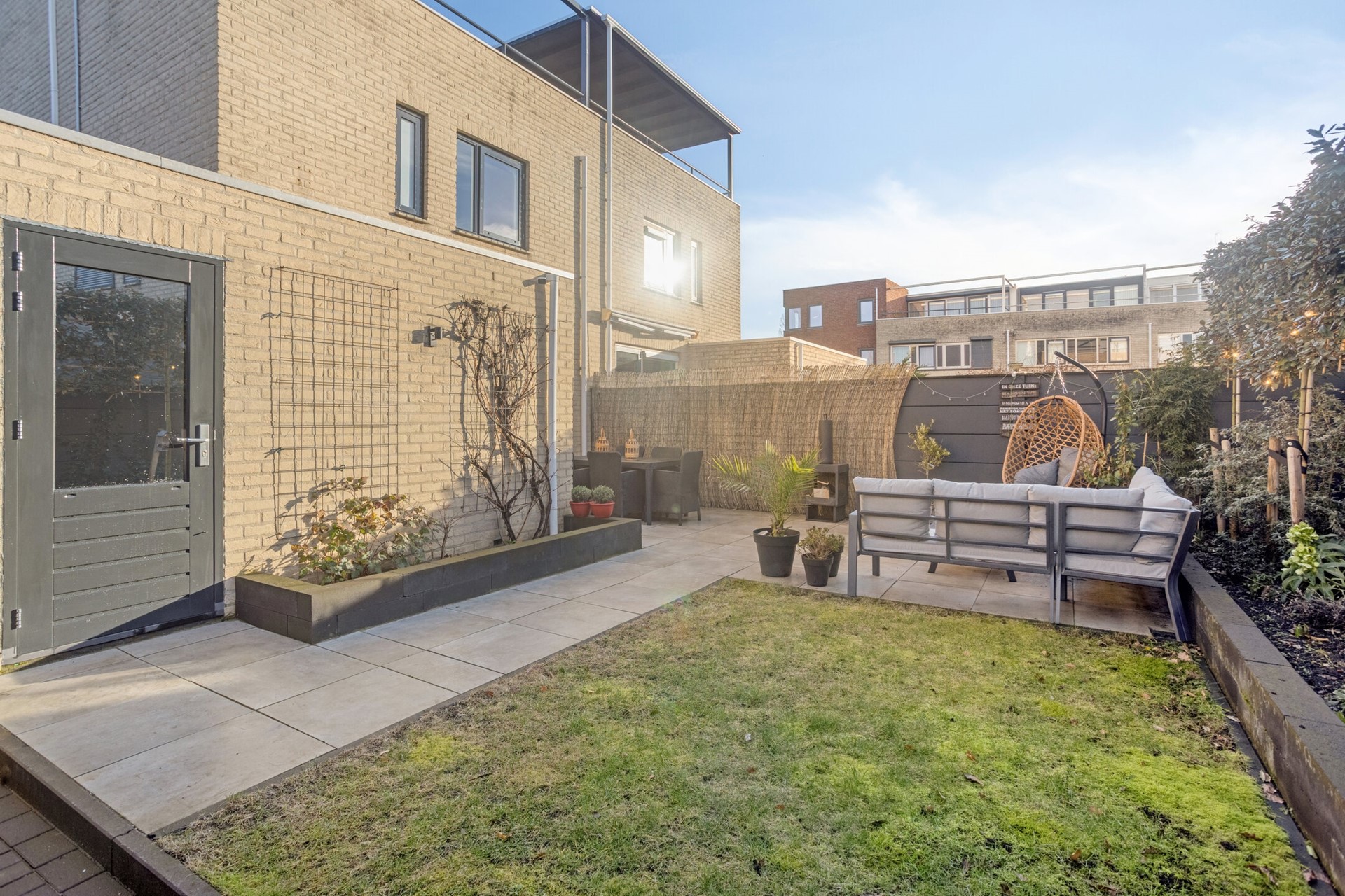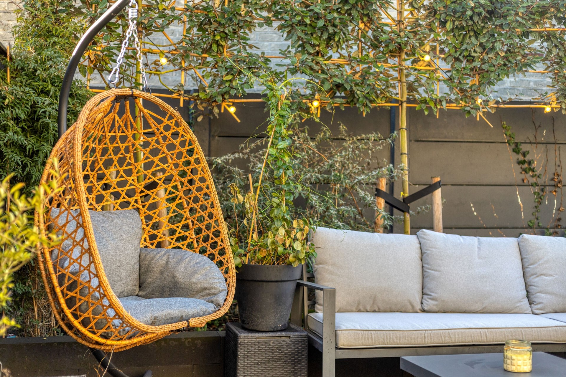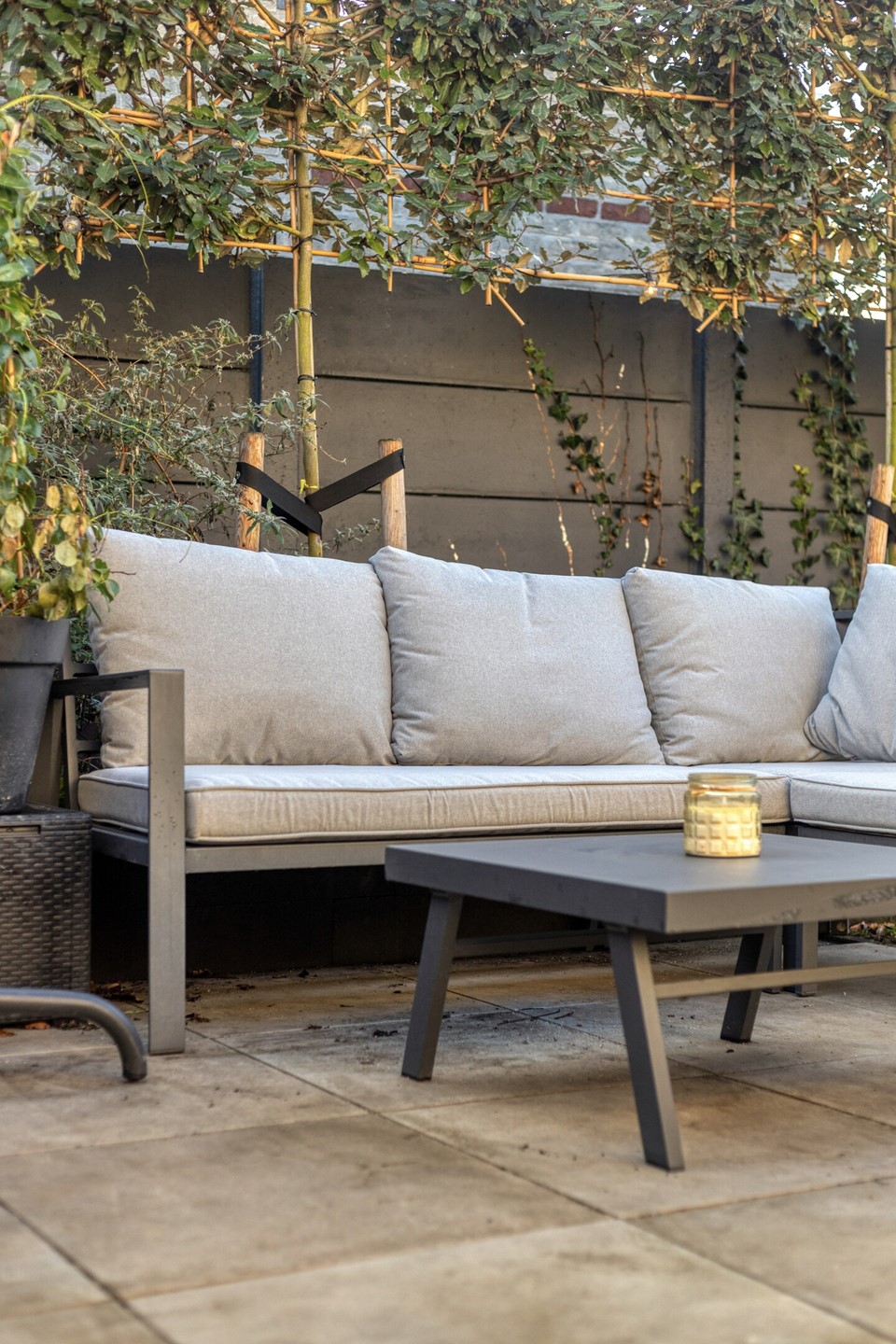 De tuin is recent opnieuw aangelegd en helemaal ingericht op genieten met weinig onderhoud. Keramische tegels, nette borders en een stukje gazon zorgen voor een fijne balans. Volledig omsloten, zonnig gelegen en met een vrije achterom. Zie je het al voor je? Zomeravonden, barbecue aan en kinderen die nog even buiten spelen.