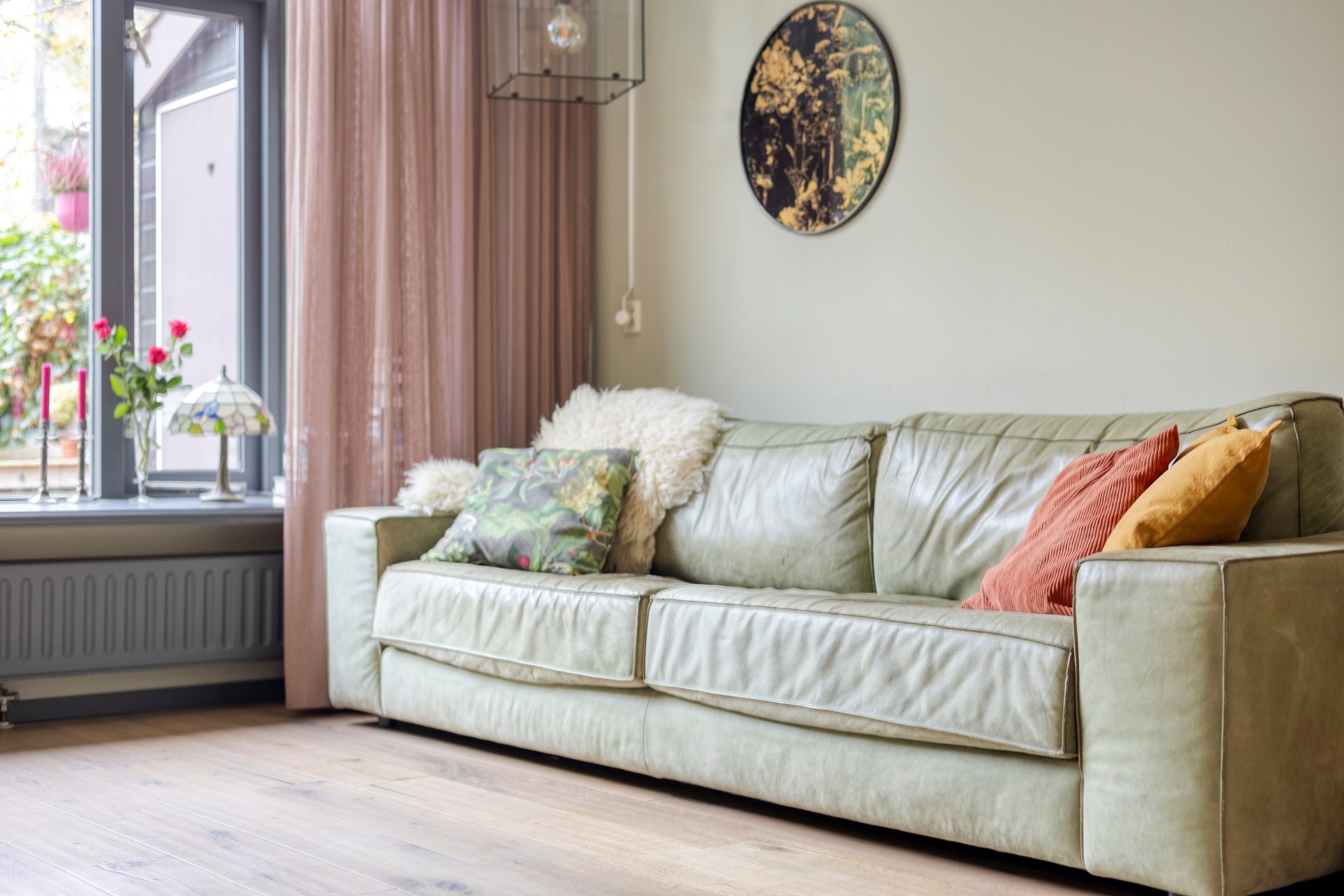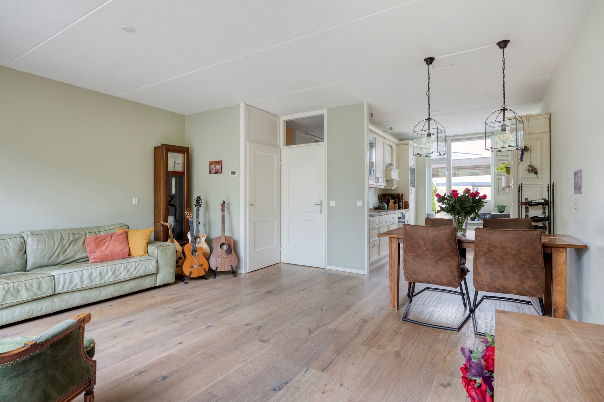 • Lichte woonkamer met eiken parketvloer