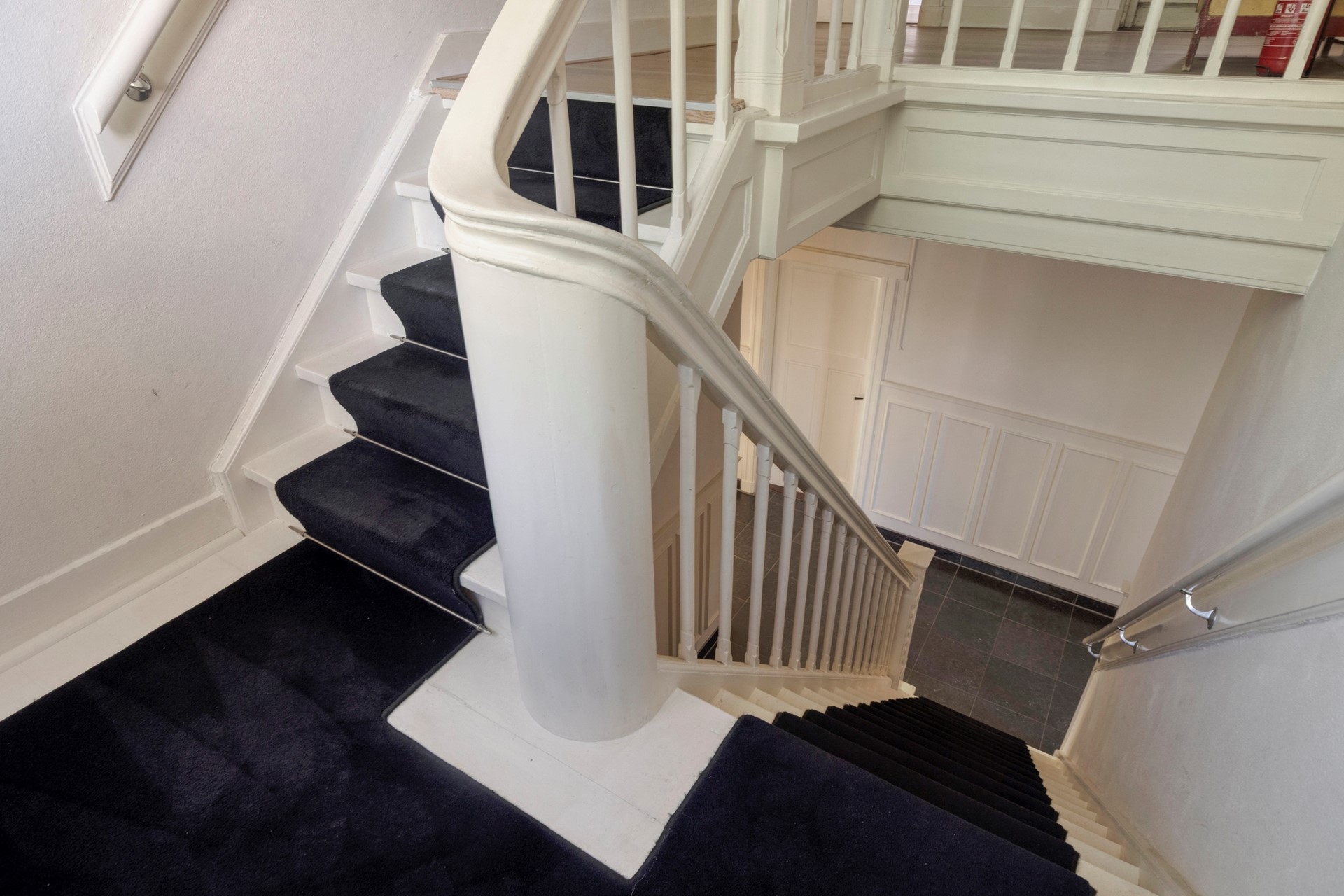 Via de prachtige bordestrap met fraaie traploper (alsof de loper voor u is uitgelegd) komt u op de overloop op de 1e verdieping. Deze biedt toegang tot een drietal slaapkamers.